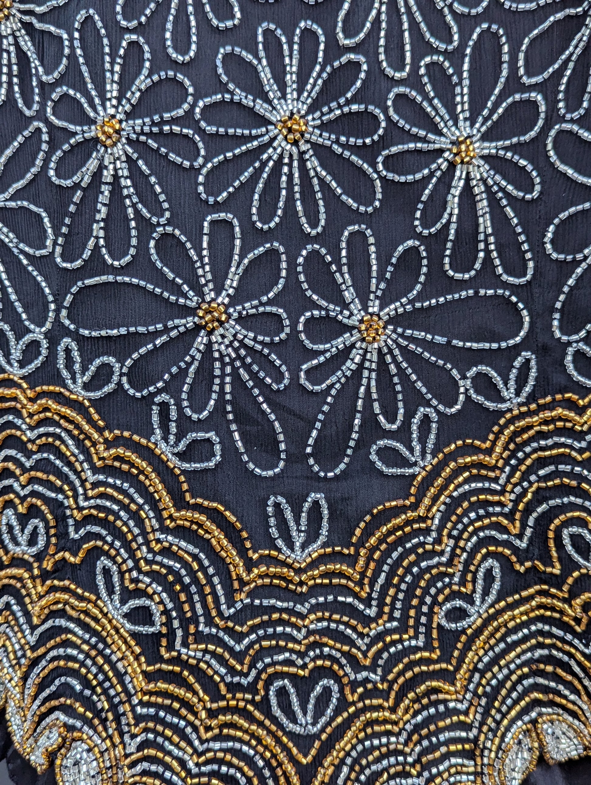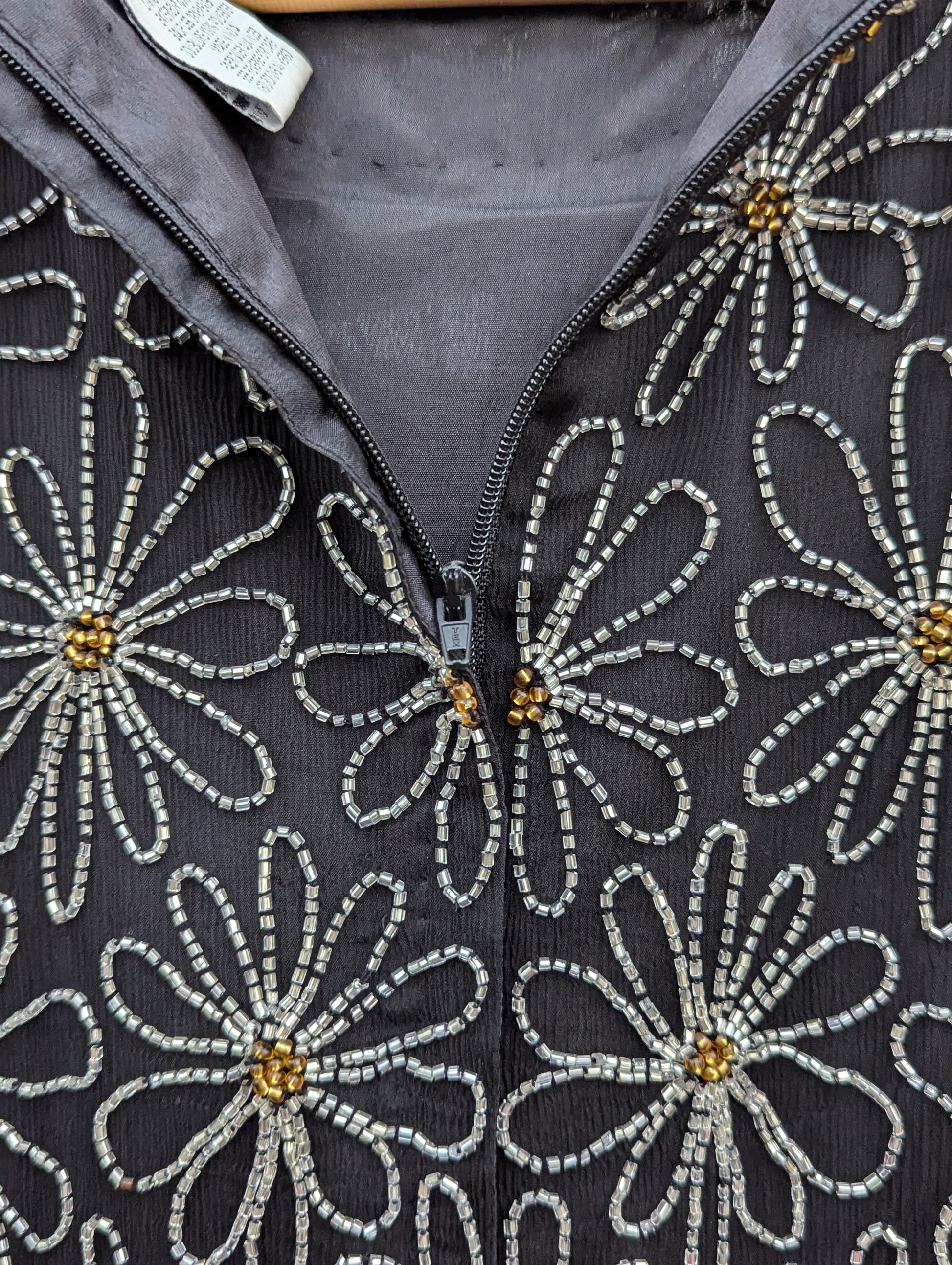 80's Vintage Papell Boutique Beaded Silk Floral Blouse